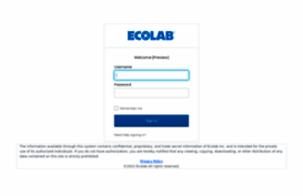 The information available through this system contains confidential, proprietary, and trade secret information of Ecolab Inc. and is intended for the private use of its authorized individuals. If you ...
